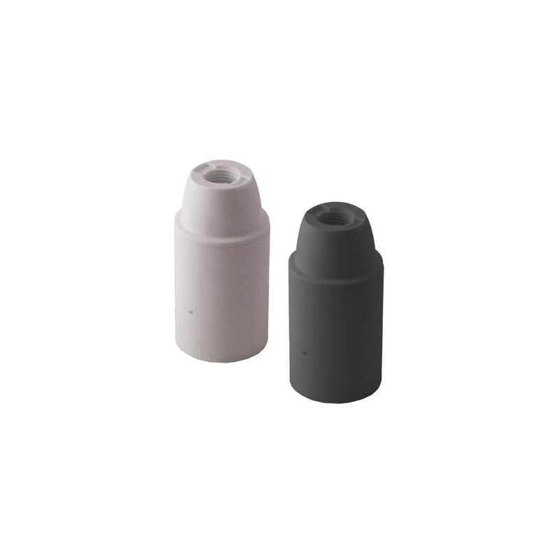 Portalampade E14 E600L Portalampade E14 termoplastico, camicia liscia, cappello con filetto M 10x1 con vite bloccaggio, frutto interno con morsetti o contatti automatici, dispositivo antisvitamento Nero