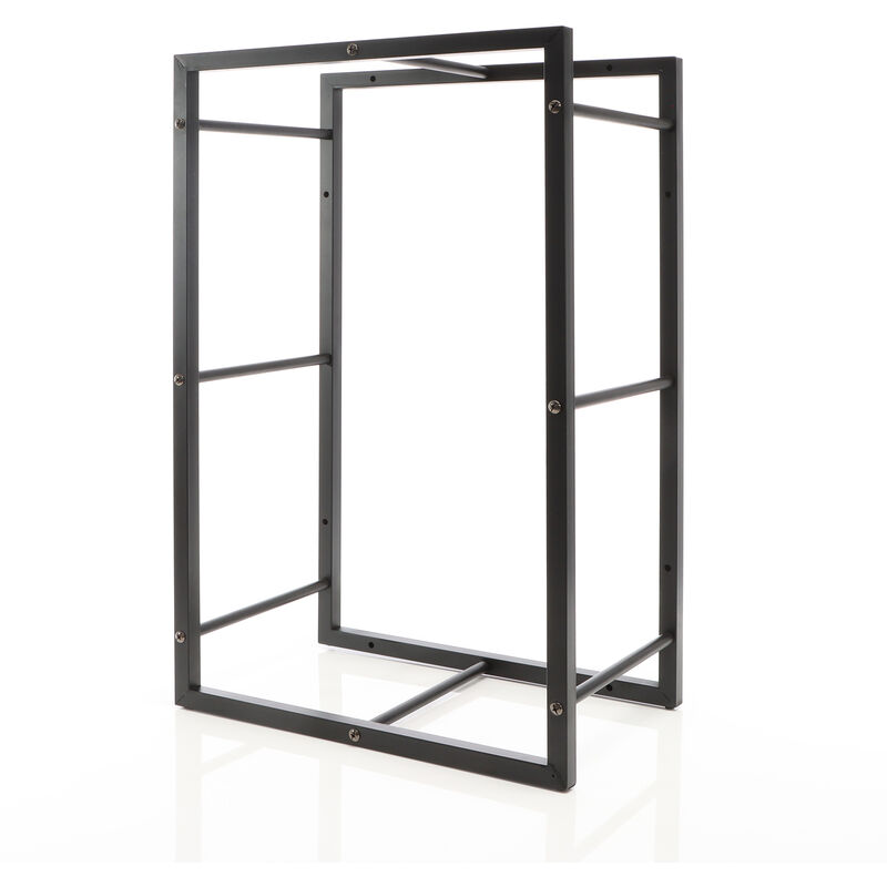 Strumento pratico per accatastare la legna da ardere in modo ordinato Stabile telaio in metallo composto da montanti quadrati con montanti tubolari Rastrelliera decorativa per legna da ardere adatta per interno Protegge i ceppi impilati dall'umidità del pavimento Aspetto elegante e discreto di colore nero Dopo aver tagliato la legna per tutto l'autunno, non si aspetta altro che accendere un caldo fuoco scoppiettante nel camino di casa. Allora questo supporto per legna da ardere Toboli non può mancare. La rastrelliera è una soluzione pratica e allo stesso tempo decorativa per riporre ordinatamente i ceppi per il camino. Il porta legna è realizzato in acciaio verniciato a polvere. Il robusto telaio in acciaio è costituito da due telai quadrati collegati da montanti tubolar. I montanti laterali non solo impediscono ai tronchi di cadere, ma assicurano anche una tenuta stabile. Inoltre, il peso del legno ne aumenta la stabilit, per cui non è necessario un ulteriore fissaggio alla parete. I