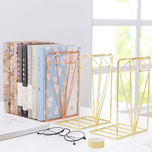2Pcs Portalibri, Fermalibri Geometrici, Scaffali per Libri Creativi per Ufficio, Supporti per Reggilibri in Metallo, Reggilibri in Metallo Supporto per Organizer per Libri(oro rosa)