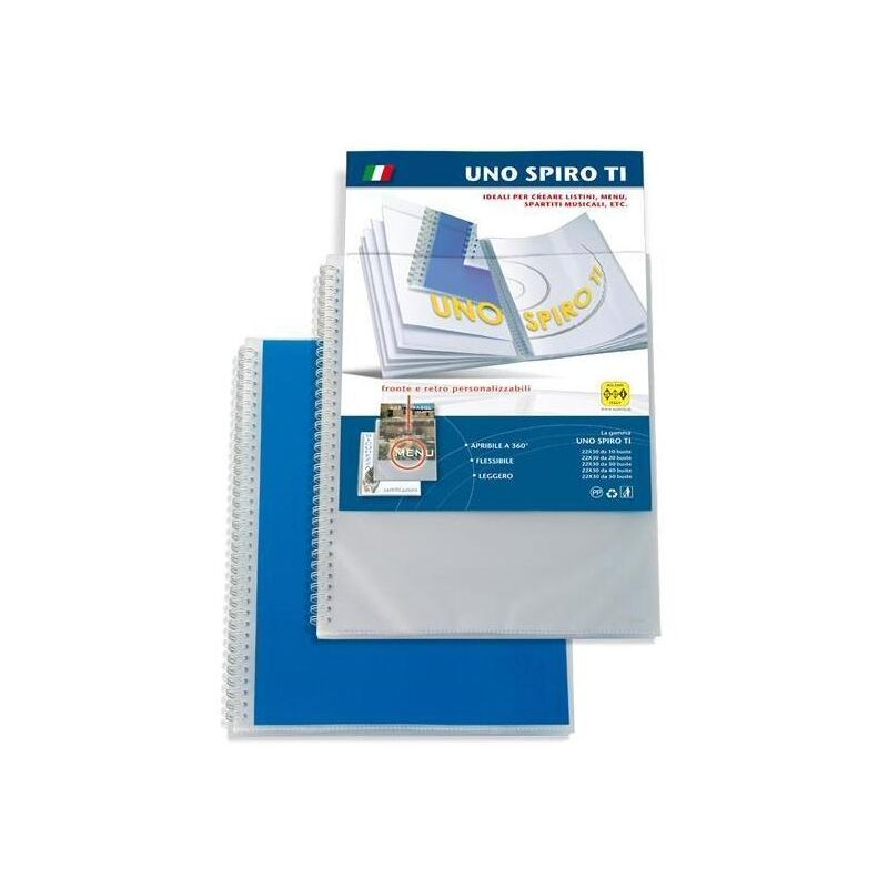 Per raccogliere l'occorrente in un book tascabile. Porta listini con spirale di metallo passo 3:1 in PP buccia con copertina e retro personalizzabili, di facile consultazione grazie alla flessibilità e all'apertura a 360°. Ideali per listini, cantici, messali. UNO SPIRO TI 22x30 Larghezza 220 mm Altezza 300 mm Quantità per pacco 14 pezzo(i) Formato A4