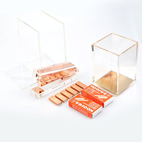 I dettagli in acrilico lucido e oro rosa faranno risplendere qualsiasi scrivania.