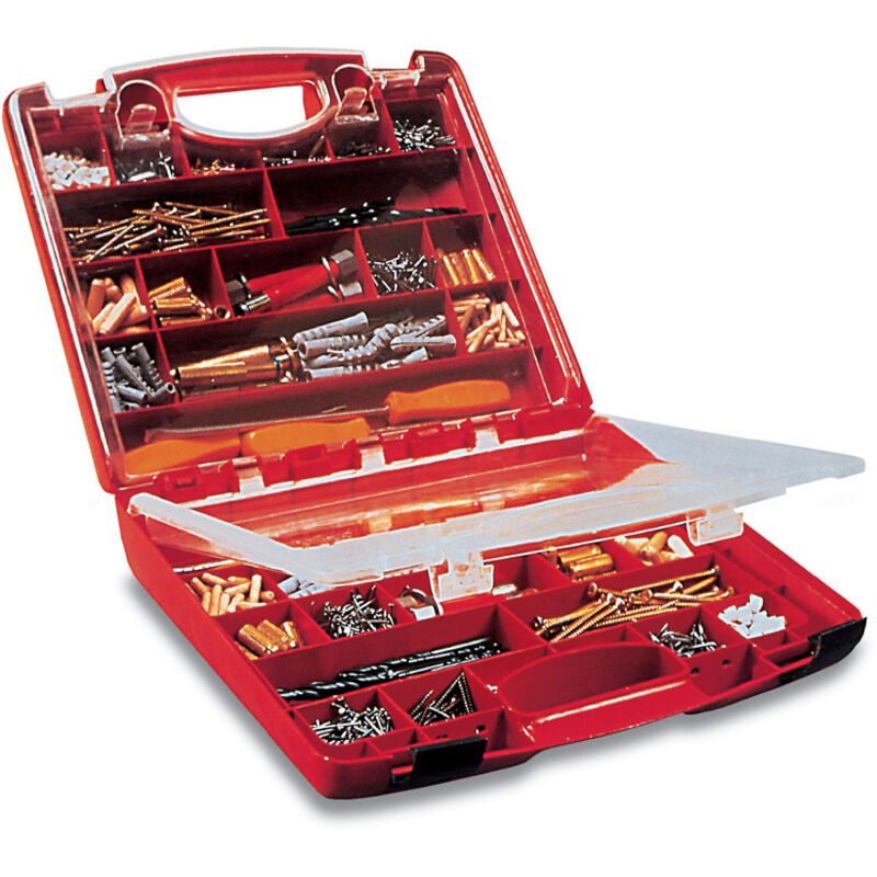 Portaminuterie Plano Europe - Serie DESIGN LINE, modello 955 Valigetta con doppio portaminuterie formato da 32 scomparti di misure diverse. Materiale Polipropilene Altezza 36 cm Larghezza 39 cm Profondità 14 cm Peso 1,8 kg Utensili presenti nella foto solo a scopo dimostrativo non inclusi