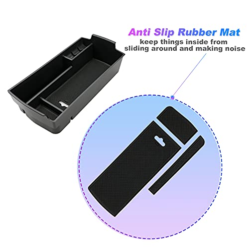 【PREMIUM MATERIALE】Questo contenitore per bracciolo è realizzato in plastica ABS di alta qualità con tappetini antiscivolo in gomma per evitare efficacemente il rumore di oggetti che colpiscono i braccioli durante la guida.