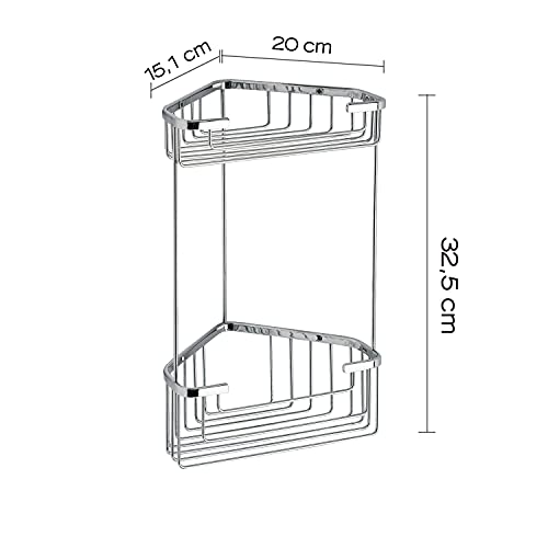 GEDY Portaoggetti doccia angolare in filo, Misure e peso: 32,5X20X15,1 CM & 0,59 KG, Porta oggetti per bagno realizzato in acciaio inox, Cromato, Design R&S Gedy, 2 anni di garanzia