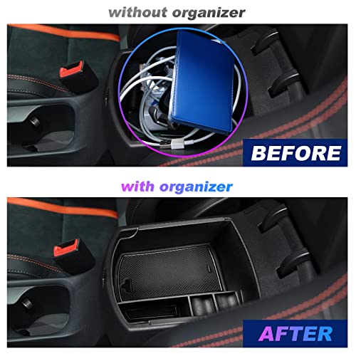 【STOCCAGGIO ORDINATO】Può essere classificato per posizionare carte di credito, monete, occhiali da sole, telefoni cellulari, cavi dati, ecc.Uso ragionevole ed efficace dello spazio del box bracciolo, in modo che gli oggetti siano riposti in modo più ordinato.