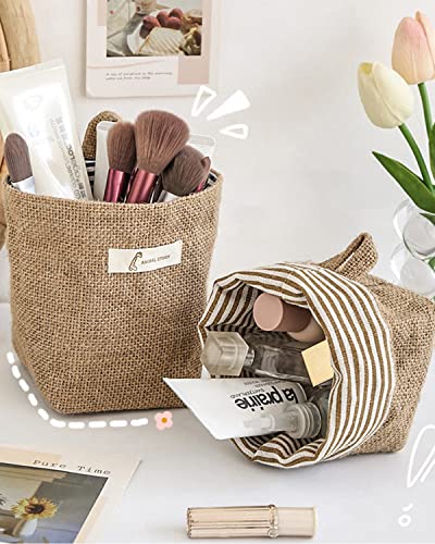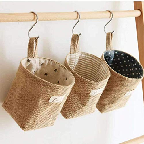 3 Pz Portaoggetti da Parete Borsa Appeso, borse portaoggetti da appendere, in cotone e lino, con manico, pieghevoli, per trucchi, L'Ufficio del Bagno della Camera da Letto della Cucina (14 * 13 cm)