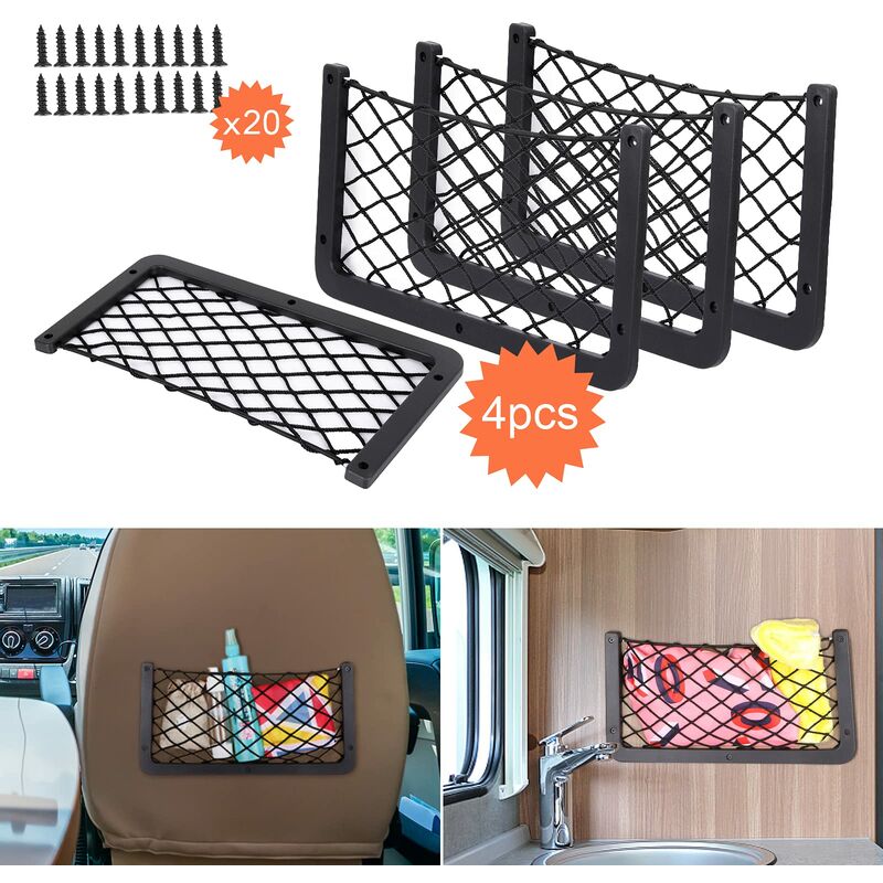 Colore come mostrato Dimensioni: 36*16*5 cm Peso: 690 grammi 【OTTIMO VALORE】Realizzato in nylon e PP di alta qualità, resistente e durevole, con forte elasticità e non facile da danneggiare. (Rete portaoggetti per auto 4 pezzi, viti incluse.) 【Dimensioni ragionevoli】 La dimensione della nostra rete per custodia è 3 6 * 18 cm, che è facile da installare nella maggior parte dei luoghi e non occupa molto spazio. Montaggio facile e sicuro con le viti incluse nel tuo camion, auto, golf cart, barca, veicolo ricreativo e persino in qualsiasi punto della casa. 【Funzionalità】Se stai cercando uno spazio di archiviazione che non occupi spazio, questa rete organizer espandibile è la soluzione per te. Quando è montato a parete, può contenere dispositivi elettronici, libri, bottiglie d'acqua e altro senza occupare spazio prezioso nel tuo camper. 【Non è facile cadere】 Il supporto per unghie rende la nostra rete di stoccaggio più solida e il la capacità portante è più forte. Il telaio ha fori per 5