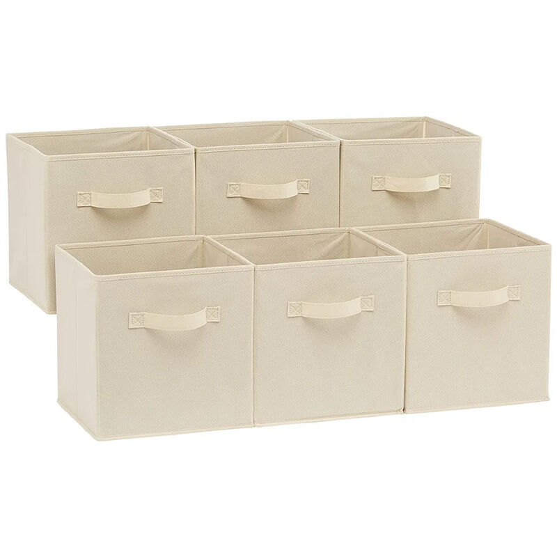 Set di 6 cubi portaoggetti in tessuto per organizzare e ridurre il disordine in casa o in ufficio. Realizzati in tessuto alla moda, resistente e traspirante con manici cuciti e facili da afferrare. < p>Funziona come contenitori o cassetti aperti quando utilizzato con l'organizer per riporre i cubi (non incluso). Leggero e facile da trasportare - Si ripiega per una conservazione compatta - Colore beige.