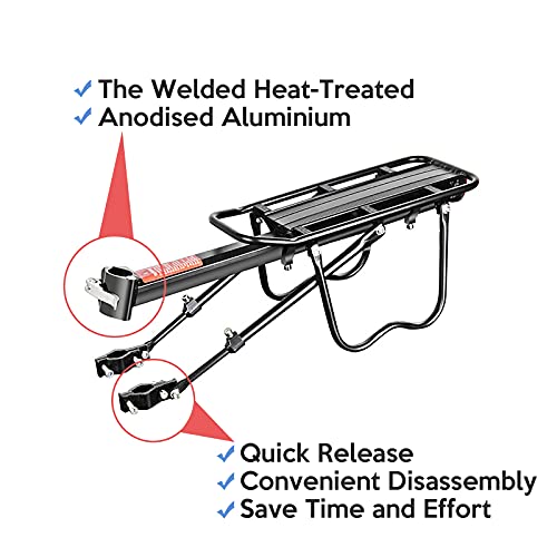 Portapacchi Bici WorthPlanet Alluminio Universale Regolabile Bicicletta Portapacchi Posteriore per Installazione Rapida Portabagagli per Mountain Bike W120009 (senza parafango)