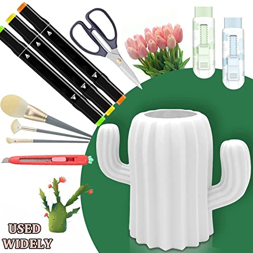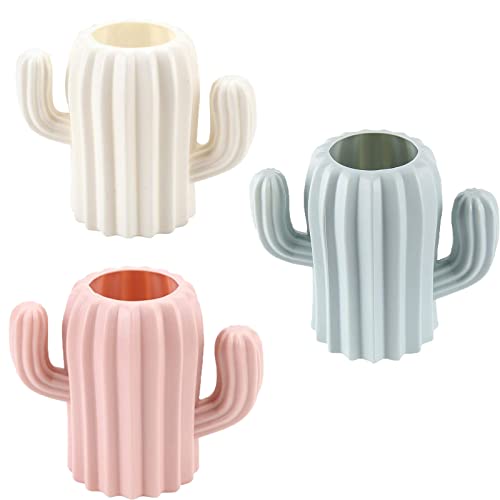 Portapenne Cactus, 3 Pezzi Portapenne per Pennelli, Portapenne Plastica Creativo, Multifunzione Plastica Portapenne, Portapenne Cactus Creativo per Pennelli da Trucco, Cancelleria, Fiori Secchi