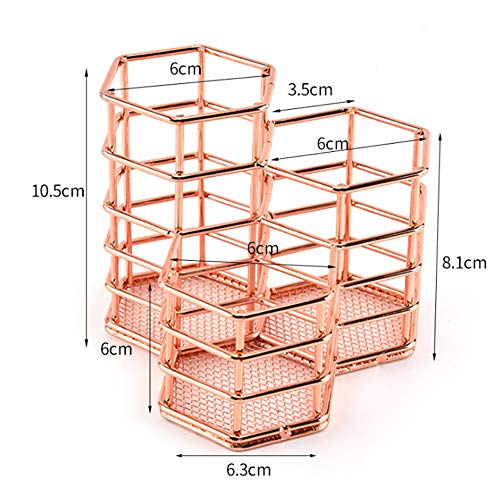 Portapenne, portapenne esagonale in oro rosa, portapenne in metallo, portapenne per scrivania, portapenne rotondo traforato alla moda, triplo supporto in rete, portapenne e porta pennelli per trucco