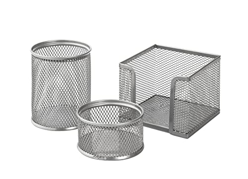 Kraf Portapenne in rete metallica, organizer da scrivania, set da 3, portapenne, porta graffette, porta memo (grigio)