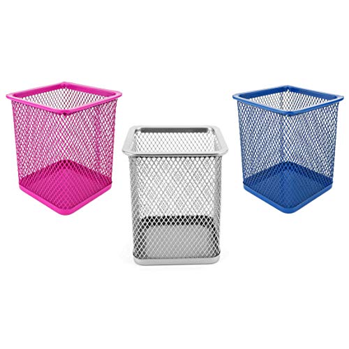 D.RECT Portapenne in rete metallica | Portamatite da scrivania | di forma quadrata | colore: argento