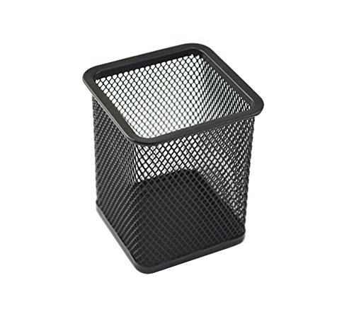 Laat - Portapenne quadrato in metallo a maglie, ideale per l'ufficio 7 x 7 x 10cm Nero