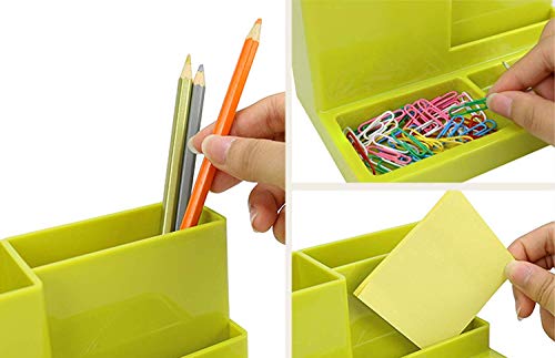Portapenne da scrivania multifunzione per ufficio e scuola, in plastica (verde)