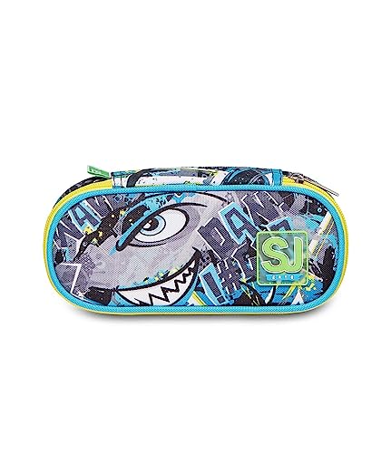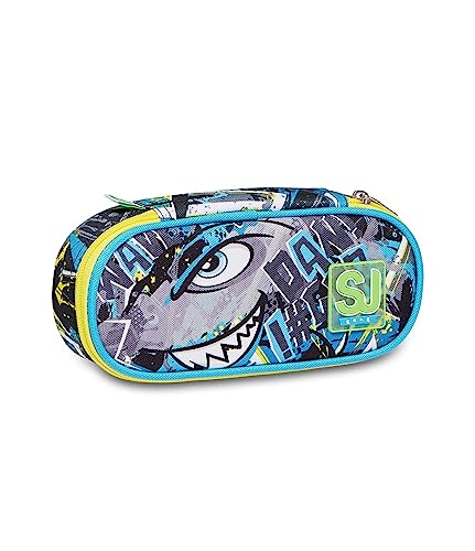 Portapenne Scuola SJ, Bustina Round Plus, SHARKEN, Blu, Taschino interno con zip, Portapenne Scuola