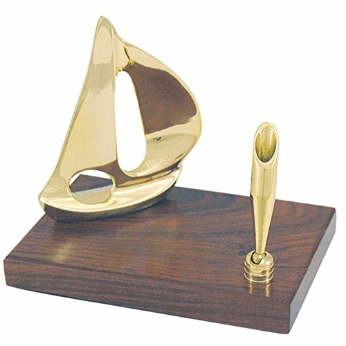 Portapenne in stile marittimo di legno/ottone con barca a vela