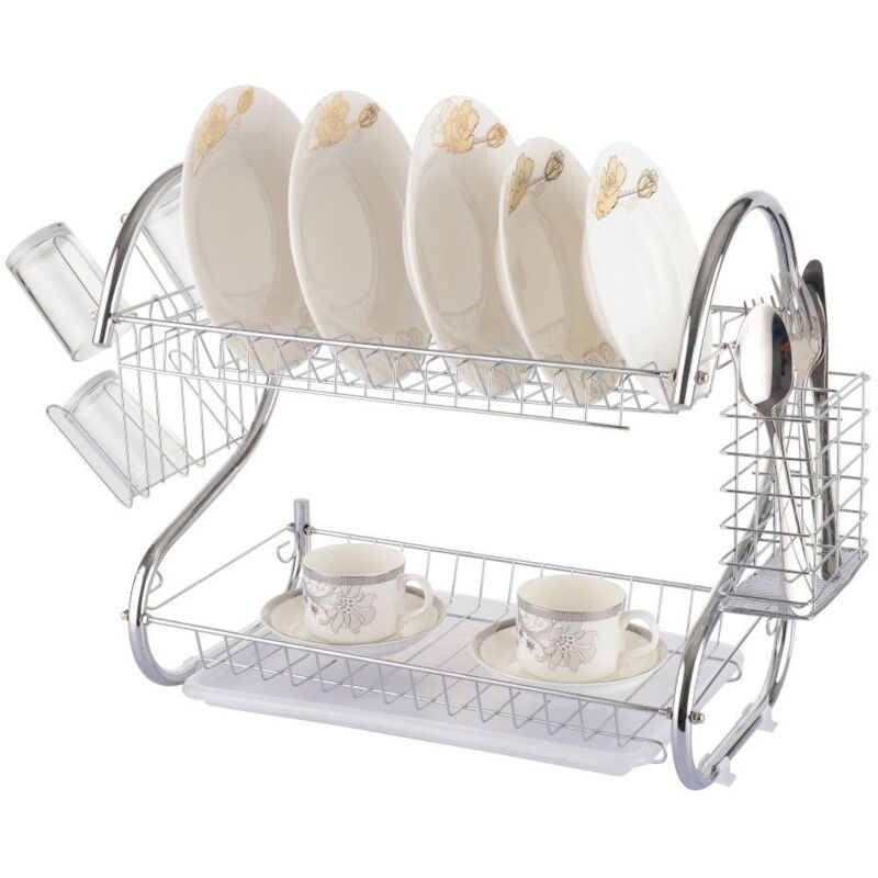 Questa soluzione ottimale per le vostre stoviglie, questo spazioso scolapiatti a due livelli, offre spazio extra per piatti, tazze, bicchieri e posate. Con dimensioni di 43 x 26 x 39 cm, questo scolapiatti non è solo pratico, ma anche progettato per adattarsi esteticamente a qualsiasi cucina. Il suo design multifunzionale garantisce un'asciugatura efficiente per una varietà di articoli da cucina. - Due livelli: offre un ampio spazio per separare e asciugare in modo efficiente diversi tipi di stoviglie. - Design multifunzionale: include slot per piatti, tazze, posate e bicchieri. - Salvaspazio e facile da montare: progettato per adattarsi facilmente alla cucina senza occupare troppo spazio. Questo scolapiatti è l'accessorio da cucina perfetto per tenere le stoviglie in ordine e asciutte in modo organizzato. Il livello superiore è ideale per i piatti, mentre il livello inferiore, dotato di vassoio, è perfetto per le tazze. Uno scomparto speciale per le posate e uno spazio dedicato ai
