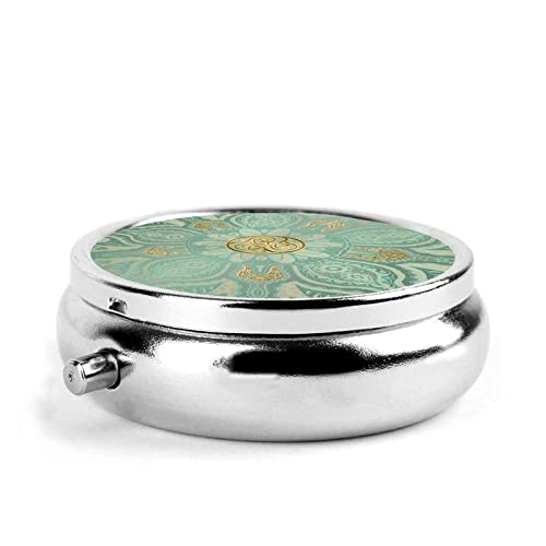 Portapillole Portapillole Mandala celtico verde salvia e oro morbido per borsa Portapillole rotondo da viaggio carino piccolo
