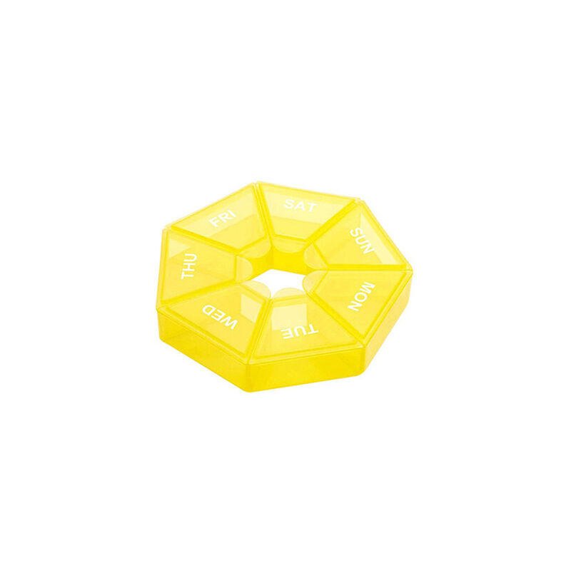 Portapillole Organizer portapillole da viaggio portatile Dispenser per medicinali Planner custodia per pillole vitaminiche contenitore per pianificatore di vitamineCaratteristica:Facile da aprire: questo piccolo organizzatore di pillole può essere aperto facilmente anche se usi solo una mano, una volta bloccato, la scatola di immagazzinaggio della pillola rimane chiusa per garantire la sicurezza delle tue pillole, che è facile e conveniente da usare anche per anziani o persone con lesioni alle mani, E non c' è preoccupazione per le pillole che cadono.Segni di 7 giorni: le scatole portapillole vengono stampate con etichette trasparenti di ogni giorno della settimana (dal lunedì alla domenica) per rendere più facile per te da separare, che consente alla scatola di ricordare il tempo in cui hai bisogno di prendere le pillole invece di te stesso, offrendoti molto comodo.Grande capacità: dotato di una grande capacità e di una stampa settimanale di etichette, questo organizzatore