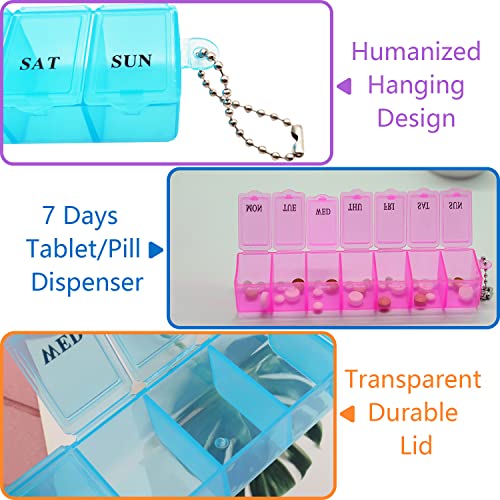 Portapillole da 2 pezzi, portapillole portatile da viaggio, organizer per tablet da 7 giorni con scomparti per farmaci, integratori, vitamine e olio di fegato di merluzzo (rosa e blu)