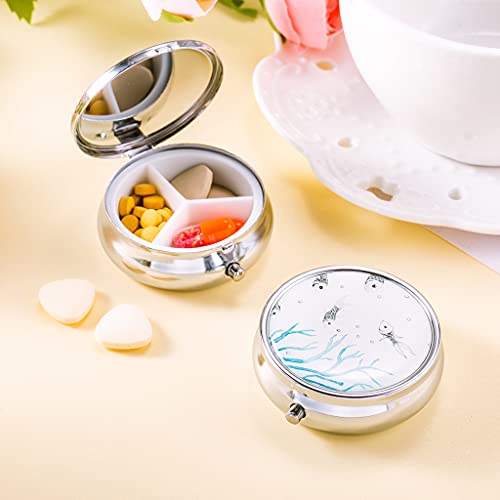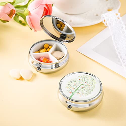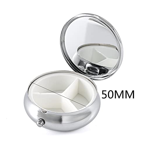 4 portapillole rotonde in metallo con specchio, scatola per pillole da viaggio, 3 scomparti, portapillole per pillole da viaggio