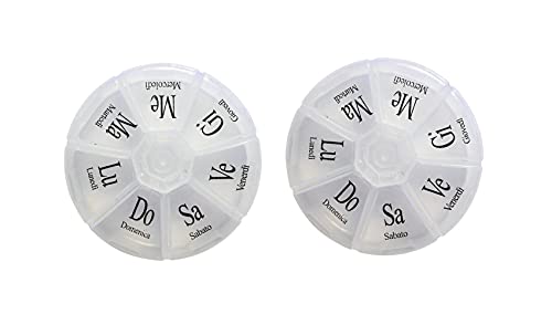 PortaPillole Settimanale Contenitore per Pillole con 7 Giorni Pillole Organizzatore, Promemoria per Pillole (2 PACK x Rotondo 7 scomparti)