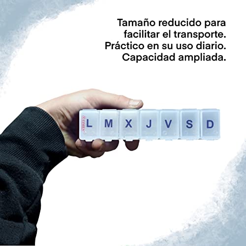 Portapillole settimanale 1 presa piccola, portapillole piccolo 1 presa, portapillole settimanale spagnolo 7 giorni, portapillole piccolo uomo e donna, portapillole settimanali (bianco)