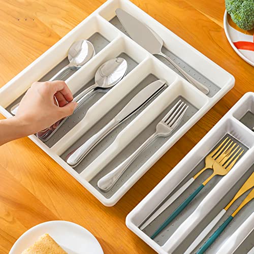 Portaposate, Organizer per Posate per Casa, Cucina, Portautensili per Cucchiai, Forchette, 5 Scomparti Portaposate cassetto, Sistema di organizzazione portaposate, Bianco
