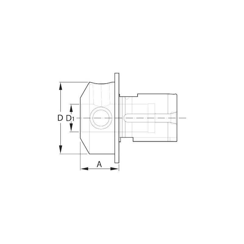 Vantaggi: * Cambio rapido mediante un solo punto di bloccaggio, quindi senza rischio di infortunio. * Gli utensili da taglio sono già preimpostati sulla macchina. * Struttura corta − bassi costi dei pezzi. Uso: Per il serraggio di utensili con piani di trascinamento. Nota: Coppia di serraggio massima per VX3 e VX4 a 5,7 Nm, ottenibile con chiave dinamometrica adatta n. art. 211750 Dim. 5,7. Coppia di serraggio massima per V3, V4 e V5 a 10 Nm. Non ruotare sopra la battuta allentando gli inserti. Esecuzione extra corta su richiesta. Dati tecnici Adattatore V4 Tipo di prodotto Mandrino ⌀ Attacco D1, mm 10 Sporgenza totale Dim. A, mm 26 ⌀ Esterno D, mm 42