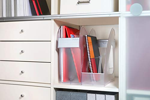 Contenuto della confezione: 2 portariviste Han 1613-63, ampio portariviste con divisori unici al mondo. Prodotto originale Han, modello di usura protetto. Made in Germany. Dimensioni esterne: 120 x 285 x 305 mm, colore: trasparente traslucido
