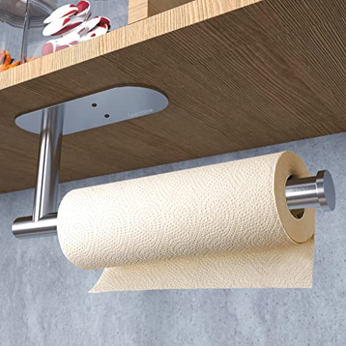 Portarotolo da Cucina Adesivo o Forature, Porta Rotolo da Cucina da Parete, Porta Carta da Cucina Acciaio Inox, Argento