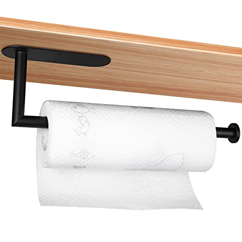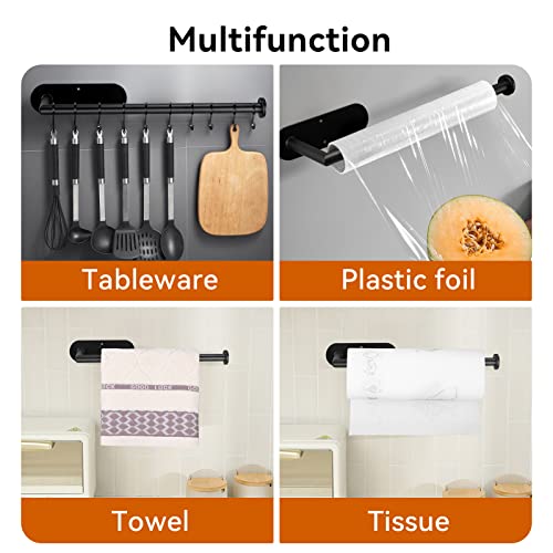 YUET Portarotolo Cucina - Porta Rotolo da Cucina da Parete Autoadesivo Porta Carta da Cucina in Acciaio Inox, Nero