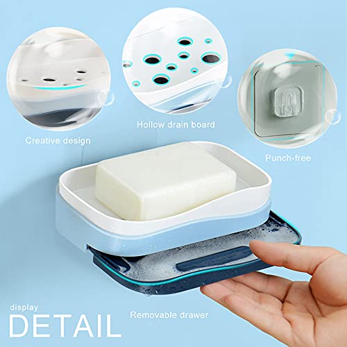 Portasapone a doppio strato staccabile, supporto per sapone da parete, autoadesivo per sapone non necessario, per bagno, cucina, vasca da bagno (blu)