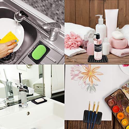 Portasapone nero in silicone, con scarico, adatto per la doccia, design antiscivolo, facile da pulire, morbido e mantiene le aste asciutte, per bagno, cucina, 4 pezzi