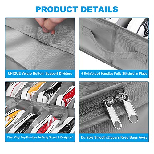 Portascarpe Salvaspazio sotto Il Letto 2 Pezzi, per 32 paia di Scarpe, Custodia Sottoletto Contenitori per Scarpe, Manici Rinforzati, Organizer Scarpe Trasparenti Divisori Regolabili