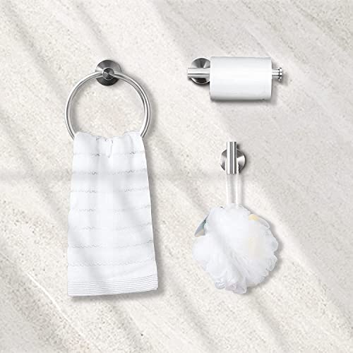 YUET Portasciugamani da Bagno 3 pezzi, Acciaio Inox 304 Porta Asciugamani parete Rotondo Anelli portasciugamani + Porta Carta Igienica + Gancio per Asciugamani, per Bagno e WC,Argento