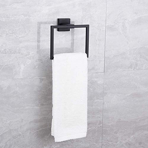 Portasciugamani da bagno Portasciugamani quadrato Portasciugamani ad anello per montaggio a parete, acciaio inossidabile SUS304 finitura nera (Nero)