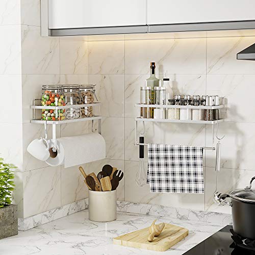 il ripiano consente di risparmiare molto spazio e può essere usato per riporre spezie, articoli per la pulizia, saponi, candele, lozioni e altro. La barra portasciugamani è aperta su un'estremità in modo da poter facilmente far scorrere gli asciugamani di carta in posizione.