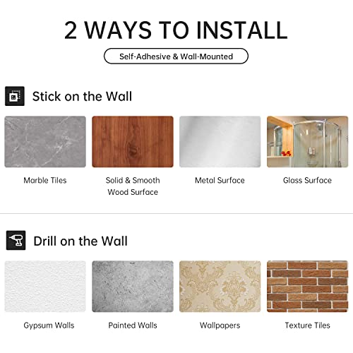 AUTOADESIVO O PARETE: La barra porta asciugamani può essere facilmente installata utilizzando potenti nastri autoadesivi o perforare la parete con le viti fornite. Assemblaggio VELOCE e FACILE. Questo kit contiene anche 2 nastri autoadesivi aggiuntivi in modo da poterli sostituire quando quelli vecchi diventano meno appiccicosi.