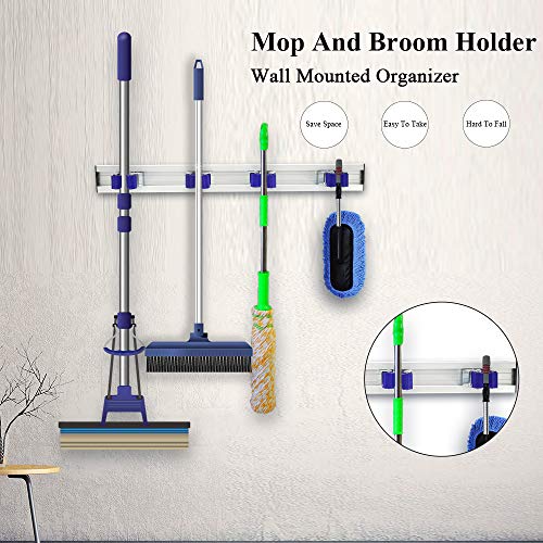 3-H Portaspazzole Da Muro, Portascope da Muro Regolabile Appendi Scope a Muro in Alluminio Supporto Per Scopa e Spazzolone(Blu 1)
