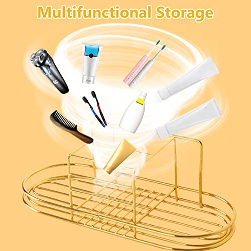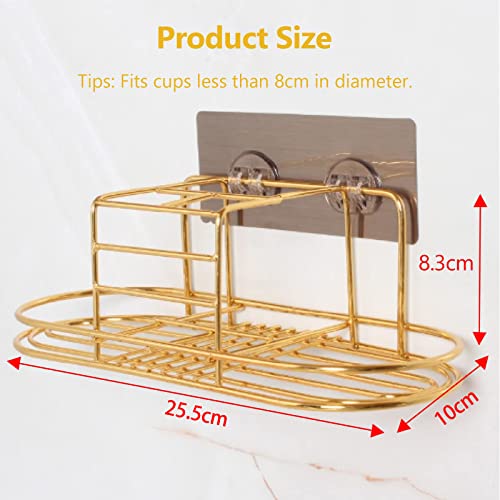 Portaspazzolino, Porta Spazzolino da Denti da Muro per Bagno Porta Spazzolino Elettrico Multifunzione Tazza Porta, Supporto Organizer per Dentifricio Rasoi, Oro