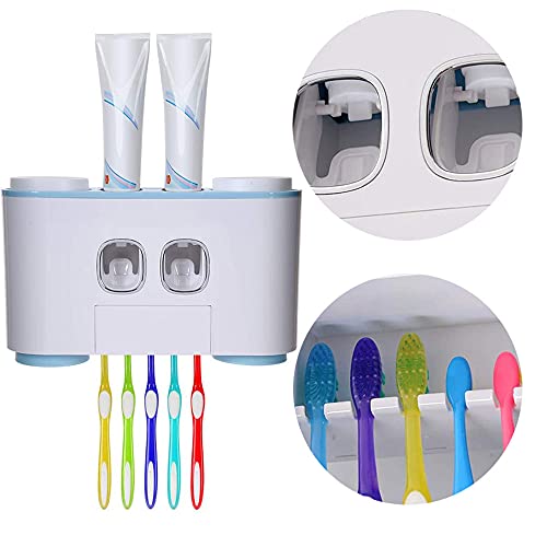 Portaspazzolino da Parete, Portaspazzolino Da Parete Automatico, Dispenser Automatico Di Dentifricio, Portaspazzolino Da Denti Multifunzionale, Set di distributore di dentifricio,Per Bambini E Adulti