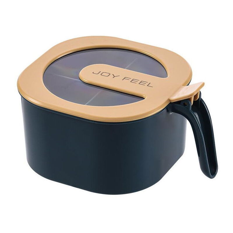 Pratico portaspezie con quattro scomparti per spezie diverse e un cucchiaio separato per ogni scomparto. Il barattolo ha una maniglia e un coperchio ribaltabile che ti consente di trasportarlo facilmente e di aprirlo con una mano. - Quattro scomparti e cucchiai - Maniglia e chiusura a scatto Specifiche: Colore: multicolore Materiale: plastica Dimensioni: ca. 17 x 14 x 8 cm La confezione contiene: 1x scatola di spezie 4 cucchiai