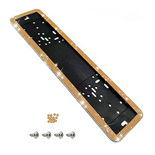 Portatarga Auto Cromato, Porta Targhe Auto Posteriore E Anteriore Universale, Supporti Per Targhe Auto Anti-vibrazione Di Alta Qualità Strass Brillantini, Per Targhe Standard Italiane (Giallo)