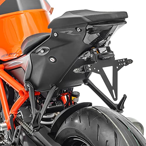 Per un nuovo look pulito della parte posteriore della moto. Sostituisce il goffo Supporto targa originale e conferisce un aspetto snello. In alluminio, fresato a CNC e anodizzato di alta qualità. Luce targa a LED integrata e fori di montaggio per indicato