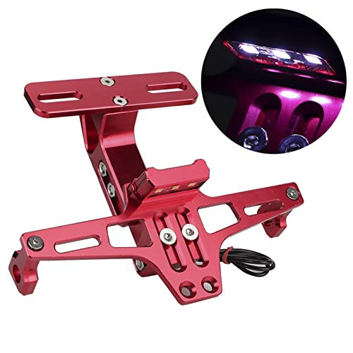 Portatarga Moto, Fydun Portatarga Regolabile con Luce LED Supporto Portatarga in Lega di Alluminio Porta Targa Universale per Moto Staffa di Montaggio(Rosso)