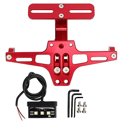 Portatarga, Supporto per Targa per Moto Portatarga Regolabile con Fanale Posteriore Materiale in Lega di Alluminio Rosso