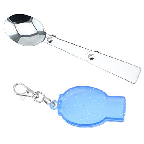 Portatile in acciaio INOX cucchiaio forchetta pieghevole da campeggio escursionismo utensili stoviglie Cucchiaio Blue