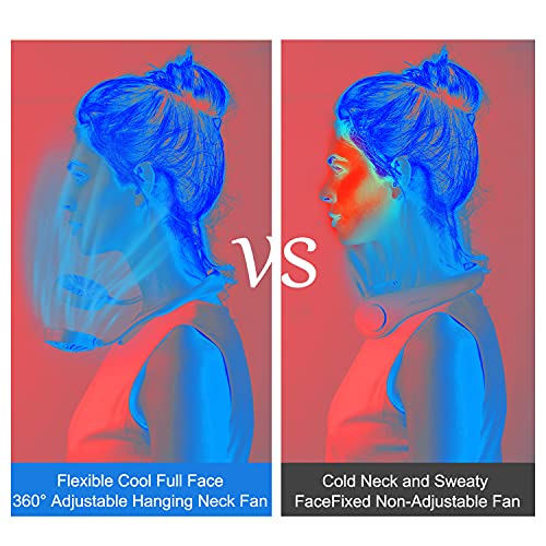 DESIGN A BASSA RUMOROSITÀ: Ventilatore da collo indossabile fatto di ABS ecologico e silicone, sette pale del ventilatore progettate per produrre aria fredda potente e silenziosa, è più sicuro e fresco per una varietà di scene, sport, scrivania, ufficio, viaggi, ecc.